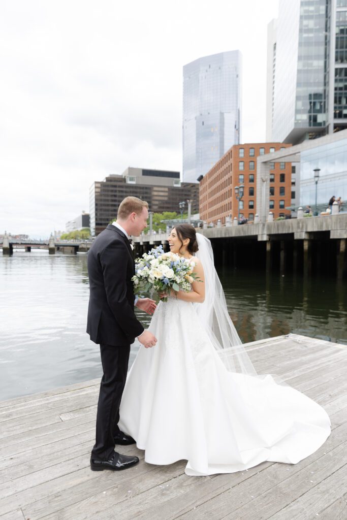 Alyssa and Keith’s wedding at the InterContinental Boston felt like a celebration in a space designed for moments like these. The hotel’s sleek, modern architecture and sweeping views of the Boston skyline created a dramatic yet intimate setting, perfectly framing every part of the day.