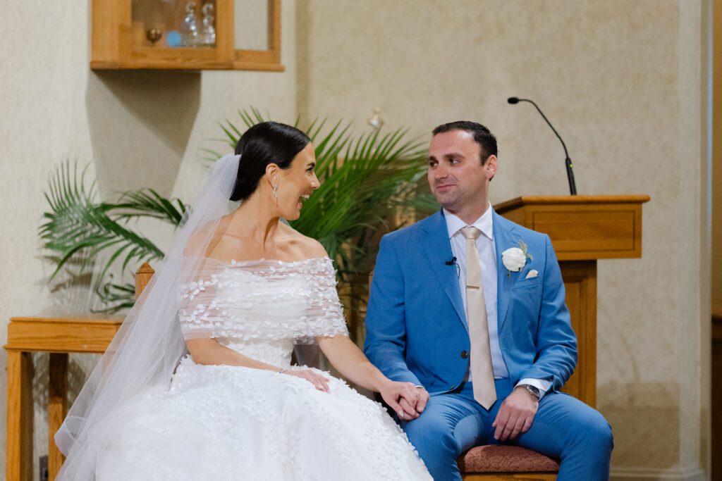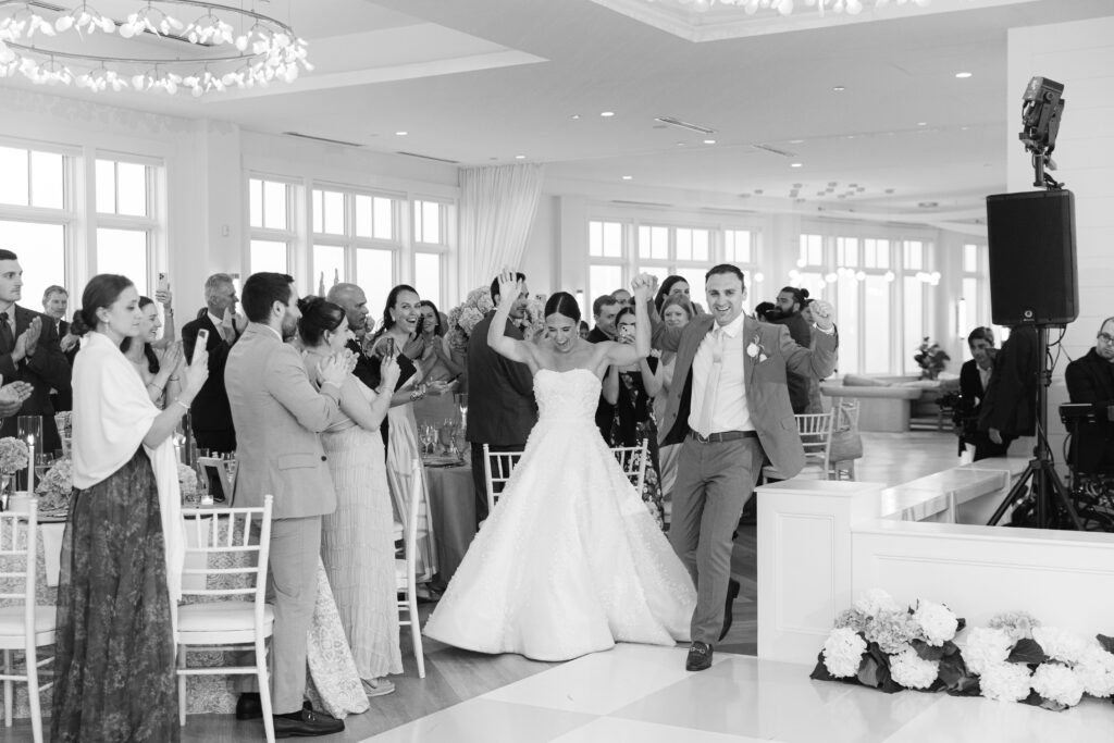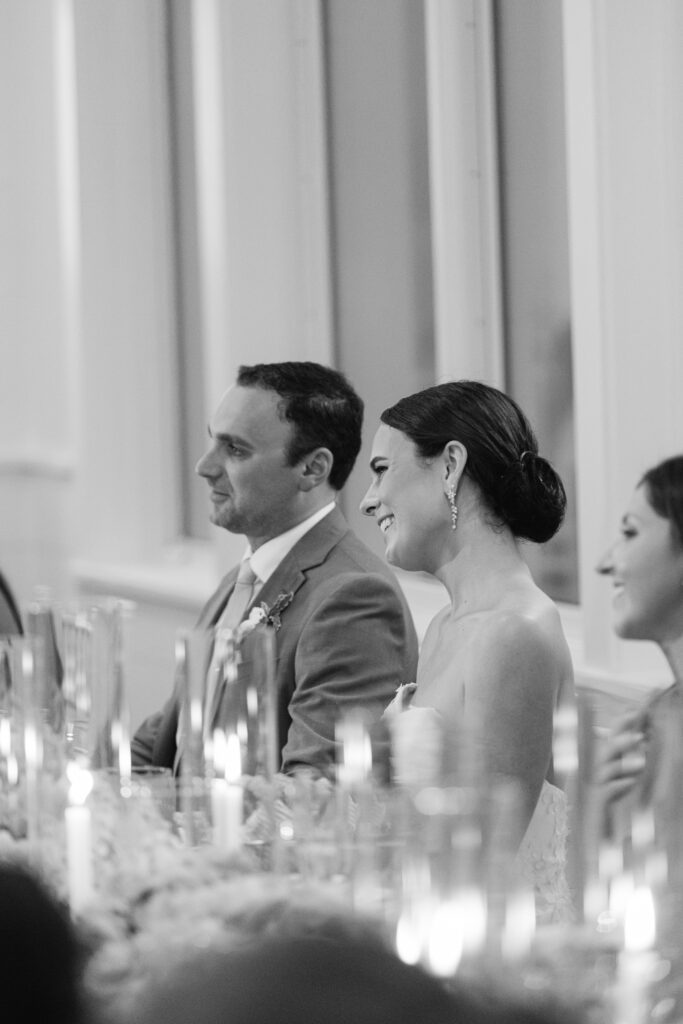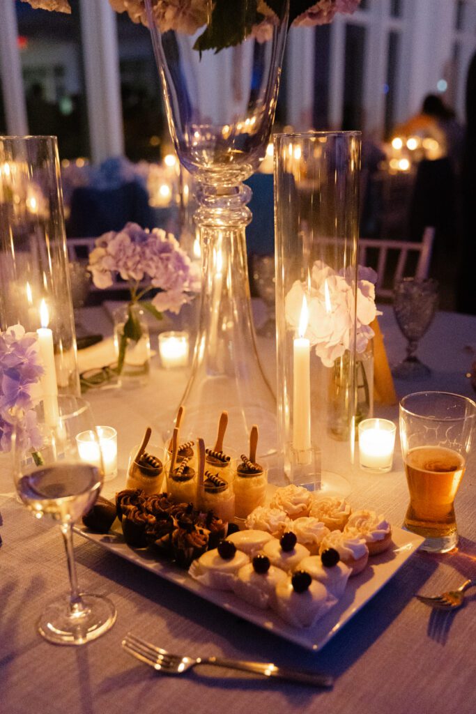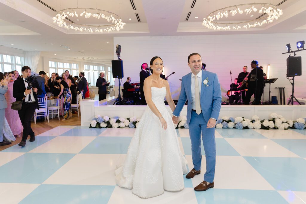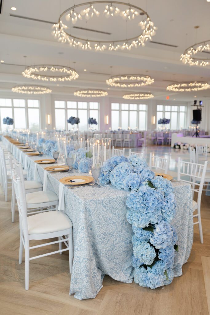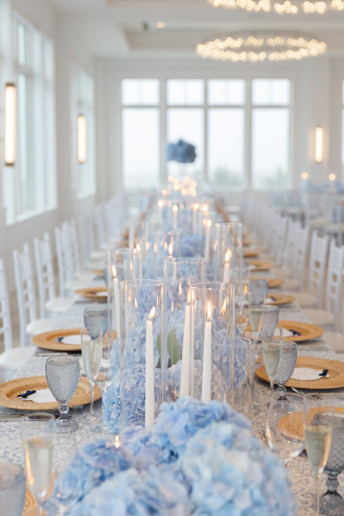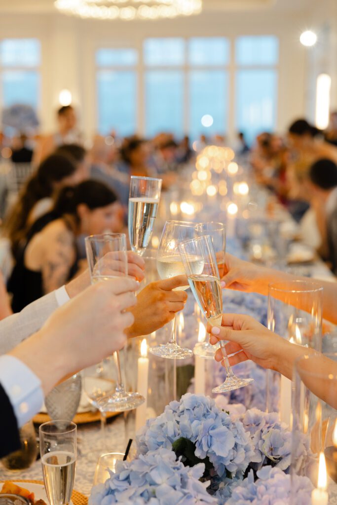 The reception space was especially stunning. Blue hydrangeas added coastal pops of color, and the soft, ambient lighting made for a natural, romantic feel. The space itself dictated how we captured moments, allowing the couple, their friends, and family to be photographed in an effortless, authentic way.